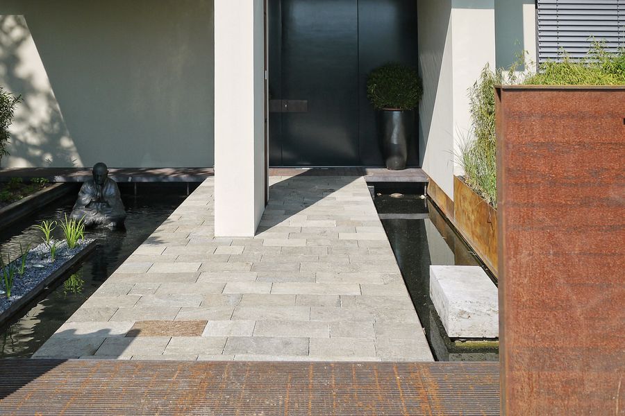 Cortenstahl Eingangselement mit pulverbeschichteter Aluminium-Eingangsanlage
