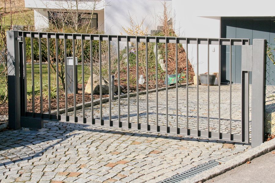 Freitragendes Schiebetor mit Stabfüllung verzinkt und pulverbeschichtet